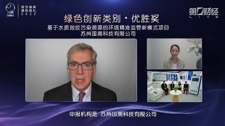 2022年12月15日,由保爾森基金會與清華大學(xué)聯(lián)合主辦的2022年“保爾森可持續(xù)發(fā)展獎”(簡稱:保爾森獎)頒獎典禮在線隆重舉行。國溯科技申報的“基于水質(zhì)指紋污染溯源的環(huán)境精準(zhǔn)監(jiān)管新模式”項目脫穎而出,位列三甲,斬獲“綠色創(chuàng)新”類別優(yōu)勝獎,被表彰其“通過創(chuàng)新的技術(shù)和模式,以智能化和戰(zhàn)略性的數(shù)據(jù)應(yīng)用和分析而產(chǎn)生的變革性影響力”。